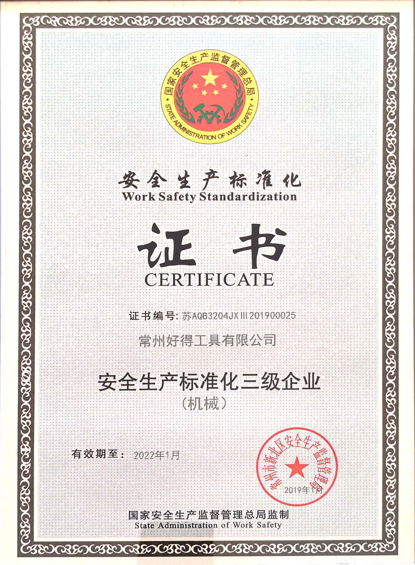 好得工具曾獲得2022年度工具行業(yè)銷售十強(qiáng)企業(yè)、2020年度工具行業(yè)畝均稅收貢獻(xiàn)先進(jìn)企業(yè)、 江蘇省民營(yíng)科技企業(yè)、常州西夏墅工具協(xié)會(huì)會(huì)員單位等